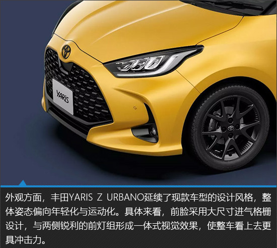 整體來看,YARIS Z URBANO在保持原有車型設計基礎上,通過黑色車頂、黑色車標、黑色輪轂等細節(jié)元素強化了整車的都市運動風格,使這款小型車看起來更加個性與精致,對于年輕消費者而言具備較強吸引力。