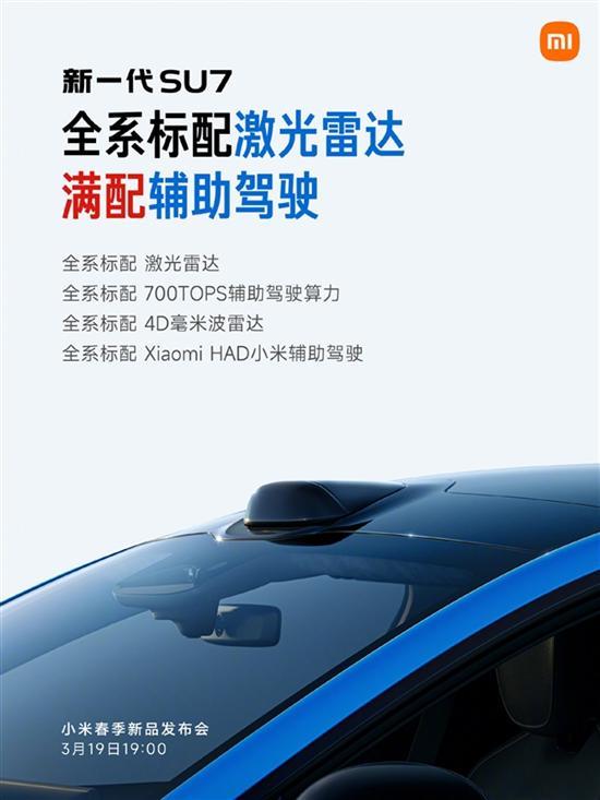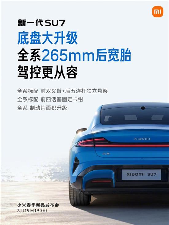 小米汽車宣布,新一代SU7將于3月19日19:00正式上市。