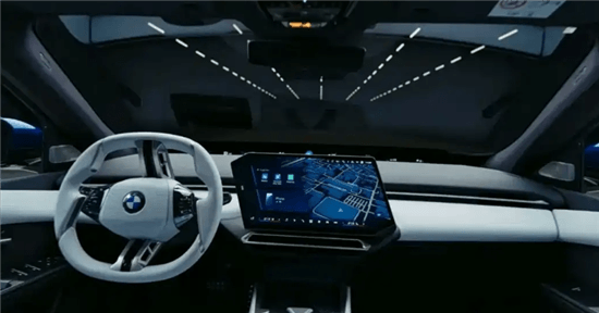 內(nèi)飾簡約,配備全新方向盤、異型中控屏及視平線全景顯示,與全新iX3風格相近。