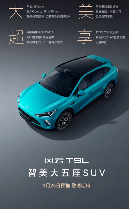 日前,車質(zhì)網(wǎng)獲悉,奇瑞風(fēng)云T9L將于3月25日開(kāi)啟預(yù)售,新車定位中型智美大五座SUV,999元小訂可享四重禮遇。