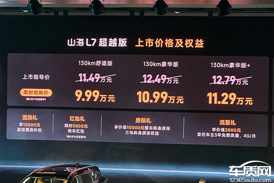 3月19日,2026款捷途山海L7超越版在安徽蕪湖正式上市,新車共推出3款車型,官方指導價區(qū)間為11.49-12.79萬元,限時搶購價為9.99-11.29萬元。同時,官方還推出質(zhì)保禮、流量禮等上市權(quán)益。