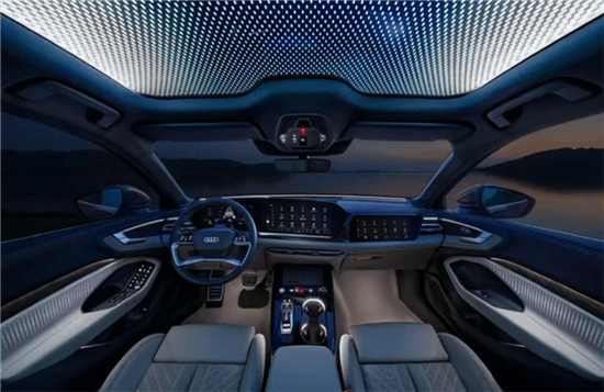 座艙內(nèi),新車配備由11.9英寸領(lǐng)航視界、14.5英寸全景中控屏和10.9英寸副駕娛樂屏組成的奧迪MMI全景顯示屏。擁有為中國消費(fèi)者定制的云感座椅,9分區(qū)智能全景天幕可隔絕99.9%紫外線,銀河星空頂與交互式靈犀氛圍燈聯(lián)動(dòng),還搭載華為乾??智駕系統(tǒng)及Bang&Olufsen音響系統(tǒng)。