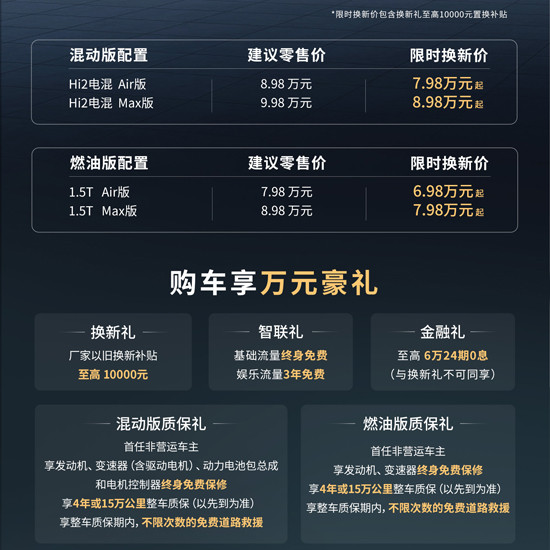 2026年4月25日,長城汽車官方宣布,旗下歐拉5燃油版和混動版車型正式上市,共推出4款車型,官方指導(dǎo)價(jià)7.98-9.98萬元,限時(shí)換新價(jià)6.98-8.98萬元。此外,購車可享基礎(chǔ)流量終身免費(fèi)、娛樂流量3年免費(fèi)、至高6萬24期0息(與換新禮不可同享)等權(quán)益。