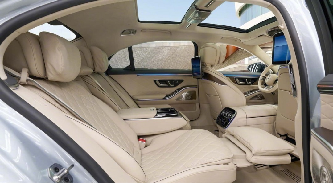 細節(jié)配置上,新車取消后排傳統(tǒng)實體按鍵,改用兩塊11.6英寸獨立娛樂屏+后排專屬平板,搭配五區(qū)獨立空調(diào)、64色主動式氛圍燈;前排座椅內(nèi)置19個調(diào)節(jié)電機,提供6種專業(yè)按摩模式,安全帶引入加熱功能可升溫至44攝氏度,后排獨立座椅支持最大43.5度靠背調(diào)節(jié)與50度腿托角度,搭配柏林之聲高端4D環(huán)繞立體聲音響系統(tǒng)(39個揚聲器+4個振蕩器),將豪華舒適體驗提升至新高度。