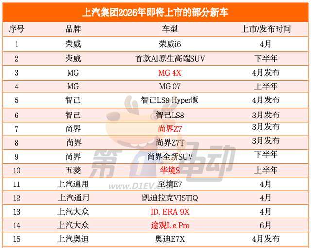技術(shù)的落地離不開(kāi)產(chǎn)品的支撐。2026年,上汽乘用車(chē)將發(fā)布十多款智能新車(chē),涵蓋榮威、MG、智己、尚界、華境五大品牌,力度之大,史無(wú)前例。與此同時(shí),兩大合資公司與商用車(chē)同步發(fā)力,上汽通用至境E7、上汽大眾ID.ERA 9X、途觀L ePro、上汽奧迪E7X等新品陸續(xù)落地,加快合資板塊電動(dòng)化轉(zhuǎn)型步伐。