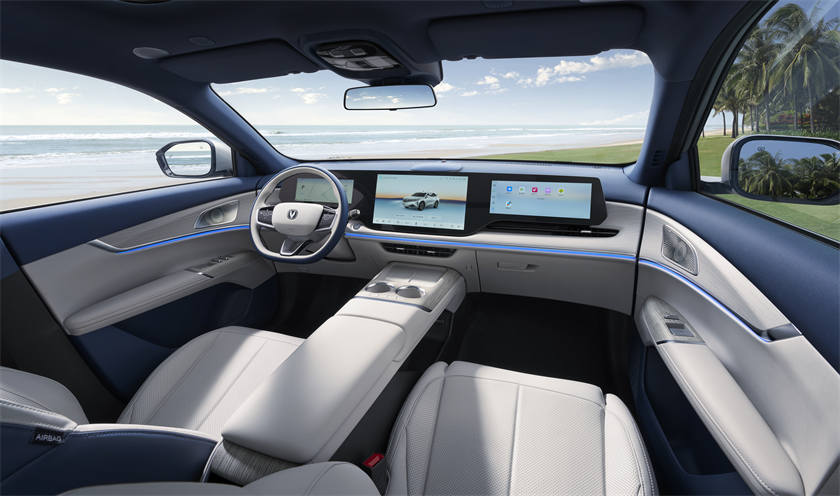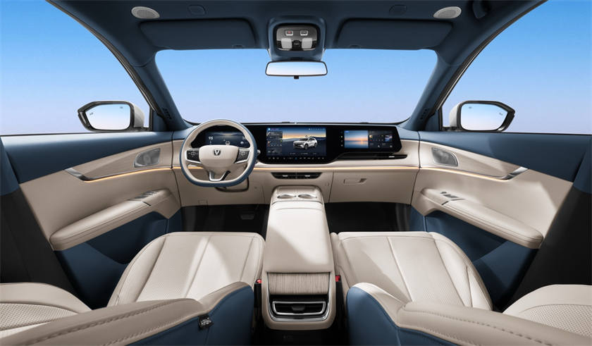 設(shè)計(jì)方面,新車采用長安“縱橫萬象”美學(xué),前臉同級(jí)最寬V形格柵,全LED大燈內(nèi)置42顆LED燈珠;車身提供安第斯灰、原子灰、尊貴黑、炫晶白、碧空藍(lán)、星云輝、月華銀灰7種配色。內(nèi)飾采用NAPPA細(xì)皮紋理皮革,256色環(huán)抱式拾光氛圍燈全長3566mm,提供幕夜黑、熱浪橙、慕雪青山三款主題色。