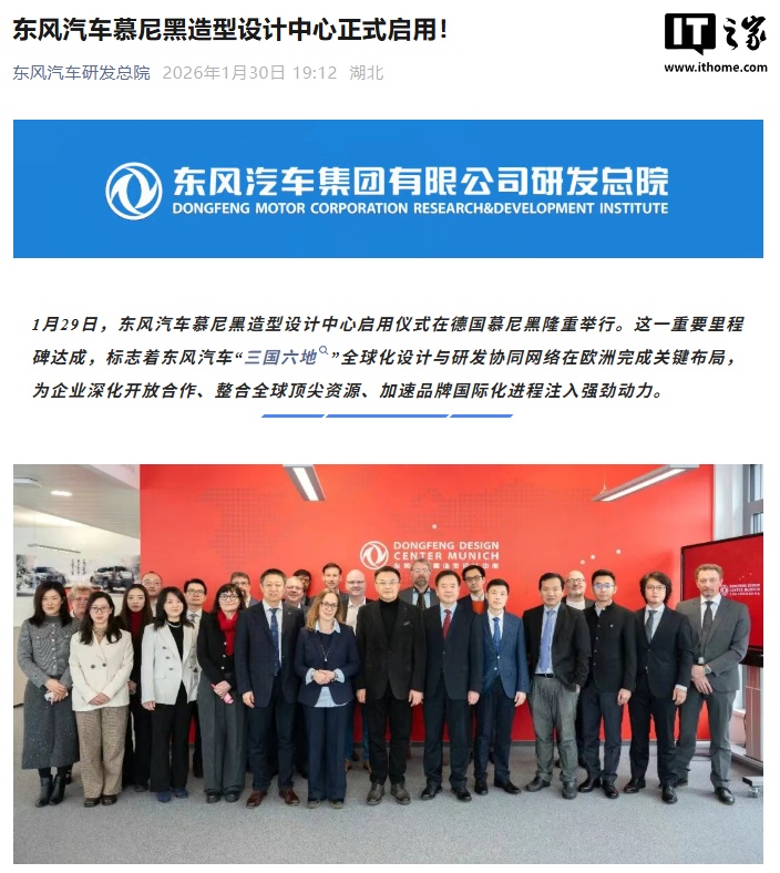 1月29日,東風(fēng)汽車慕尼黑造型設(shè)計(jì)中心在德國慕尼黑舉行啟用儀式,標(biāo)志著東風(fēng)汽車“三國六地”全球化設(shè)計(jì)與研發(fā)協(xié)同網(wǎng)絡(luò)在歐洲的關(guān)鍵布局完成。慕尼黑造型設(shè)計(jì)中心的設(shè)立,旨在深化東風(fēng)汽車以用戶和場景為牽引的整車開發(fā)體系,提升造型設(shè)計(jì)和海外研發(fā)能力。這一舉措體現(xiàn)了東風(fēng)汽車對汽車工業(yè)設(shè)計(jì)的尊重和全球化發(fā)展的長遠(yuǎn)規(guī)劃,有助于東風(fēng)造型設(shè)計(jì)更直接融入全球前沿的設(shè)計(jì)思潮、工程理念與審美體系。