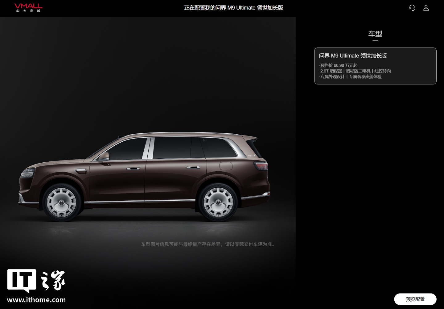電池配置,純電版則為120度。特別版問界M9Ultimate領(lǐng)世加長版預(yù)售價66.98萬元起,配備2.0T增程器、增程版三電機(jī)、線控轉(zhuǎn)向等,并擁有專屬外觀設(shè)計和奢享座艙體驗。華為官網(wǎng)已開放新車預(yù)訂,更多配置信息在預(yù)訂頁面曝光。