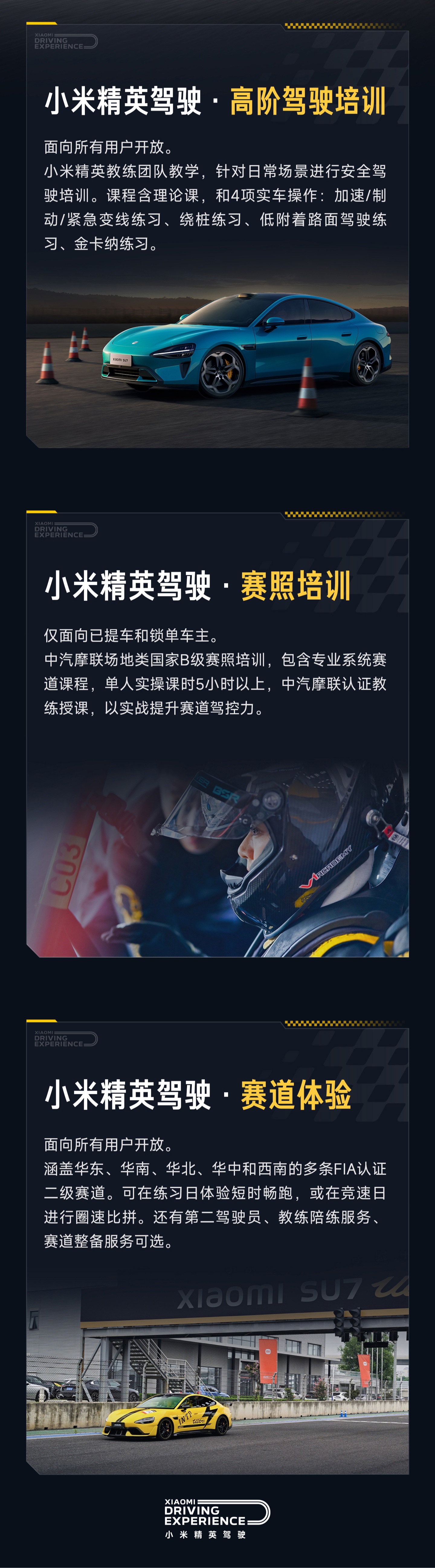 高階駕駛培訓面向所有用戶,由小米精英教練團隊負責教學,內(nèi)容涵蓋日常場景的安全駕駛培訓。課程包括理論課和四項實車操作練習,如加速/制動/緊急變線、繞樁、低附著路面駕駛和金卡納練習。